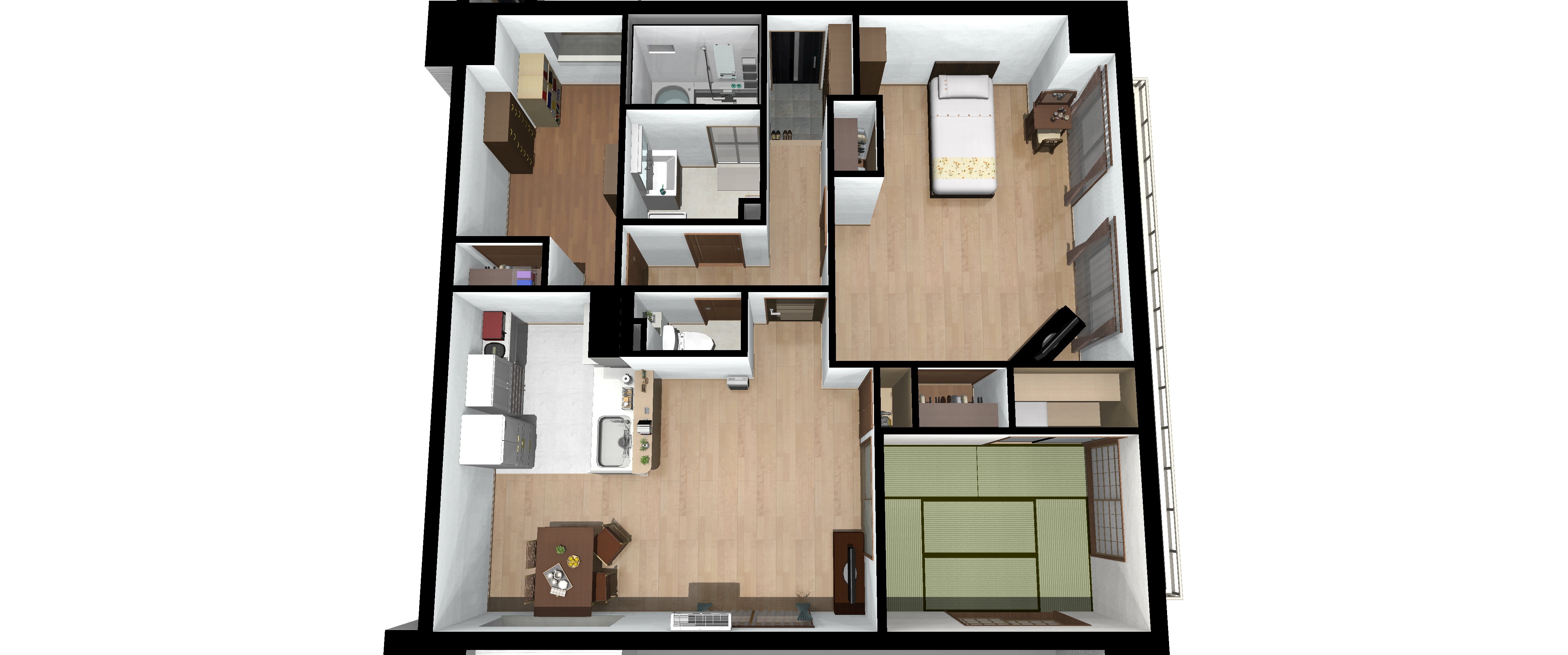 鳥瞰パースで全体を見ることで、各部屋の繋がりが分かります。