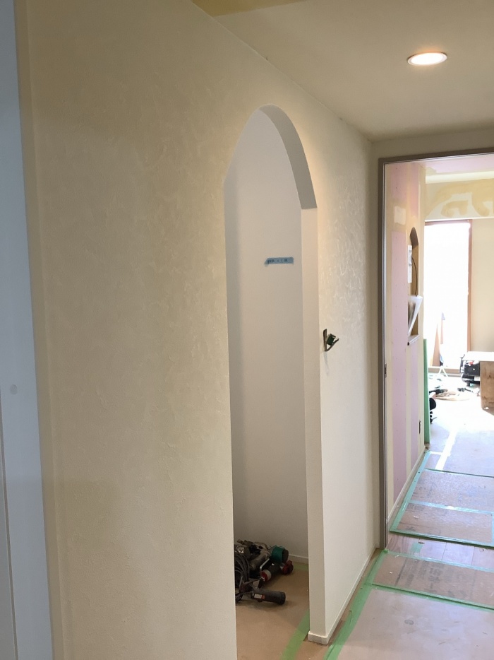 よくある角張ったニッチではなく、ここにもアーチを作ることで、可愛らしい印象になりました。