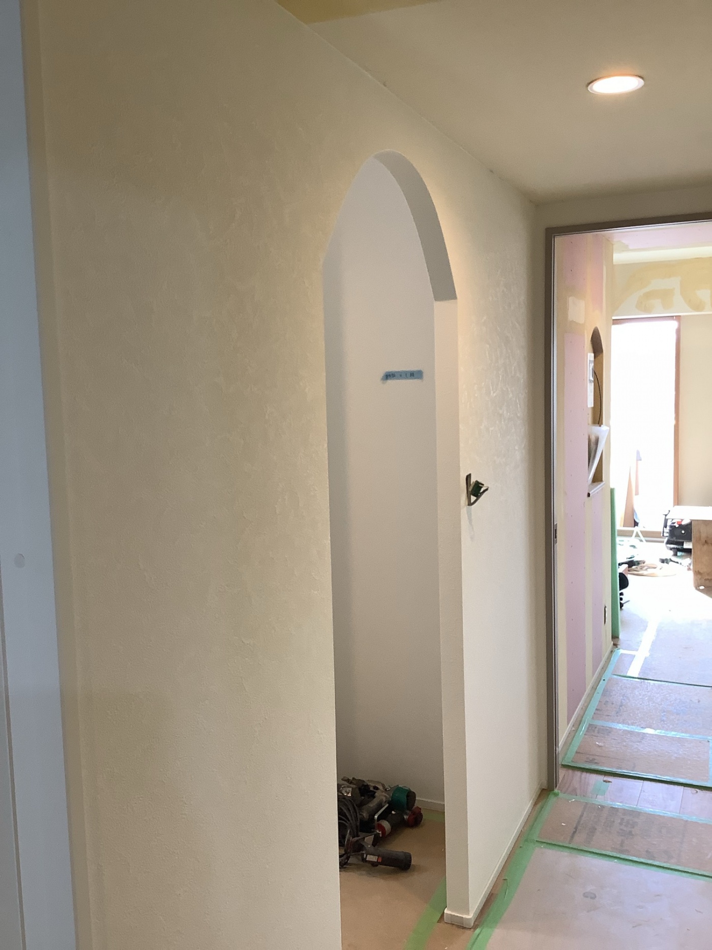 ウォークインクローゼットを新設したのですが、あえて入り口に建具は取り付けず、アーチ型の開口をつくりました。