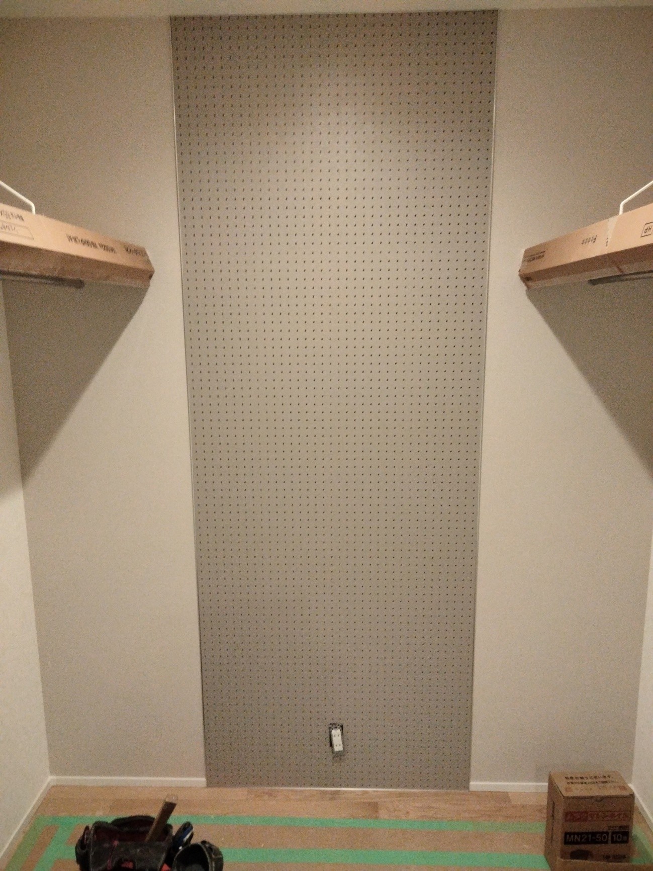 有孔ボードをウォークインクローゼット奥に設置しました。