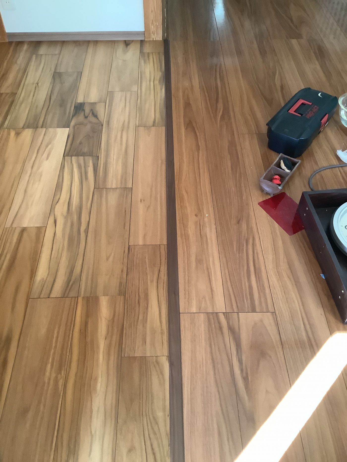 そして、もともと敷居が入っていた部分にはフローリングを貼り、リビングのフローリングとの間には床見切といわれる部材を使用しております。