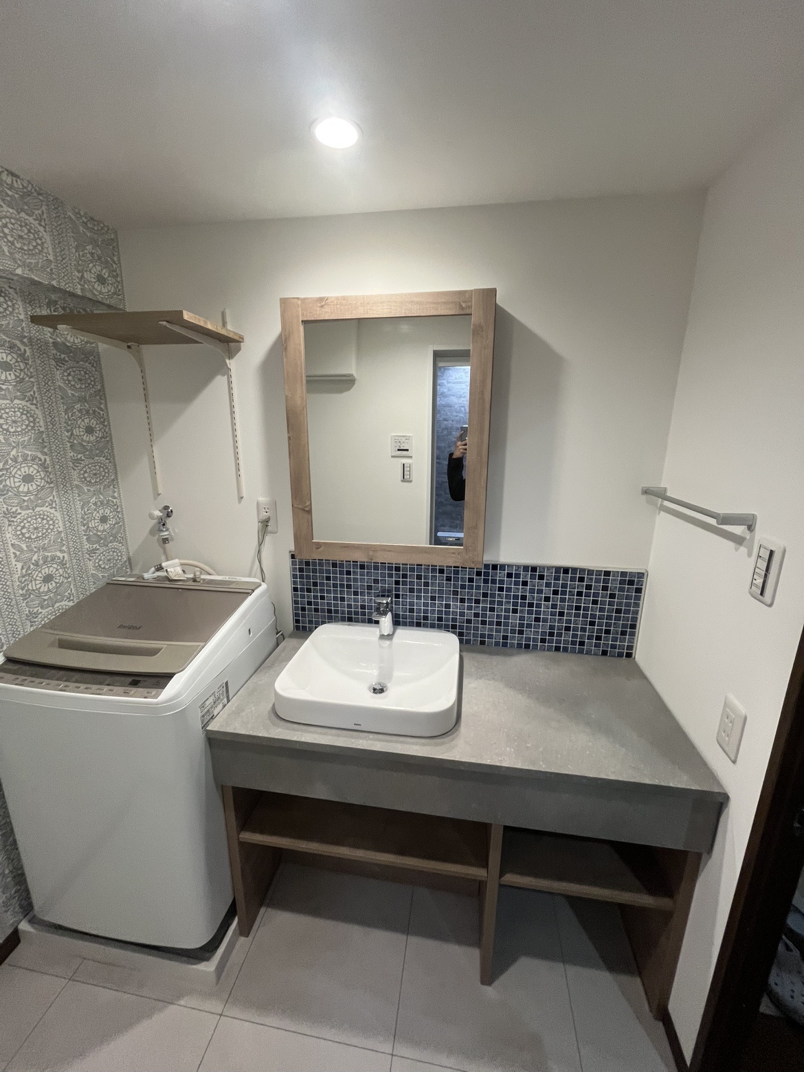 洗面カウンターと化粧鏡の間に好きな柄のタイルも貼ることができ、