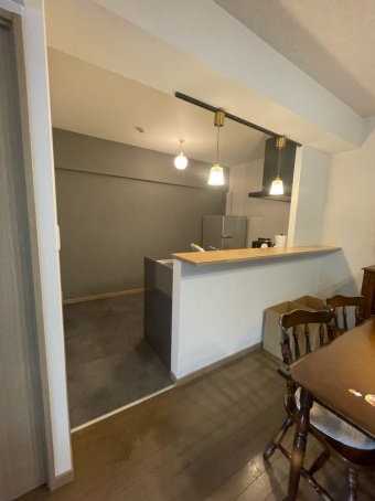 もともと対面式でしたが、吊り戸棚とシンク横の壁があり、閉塞感がありました。