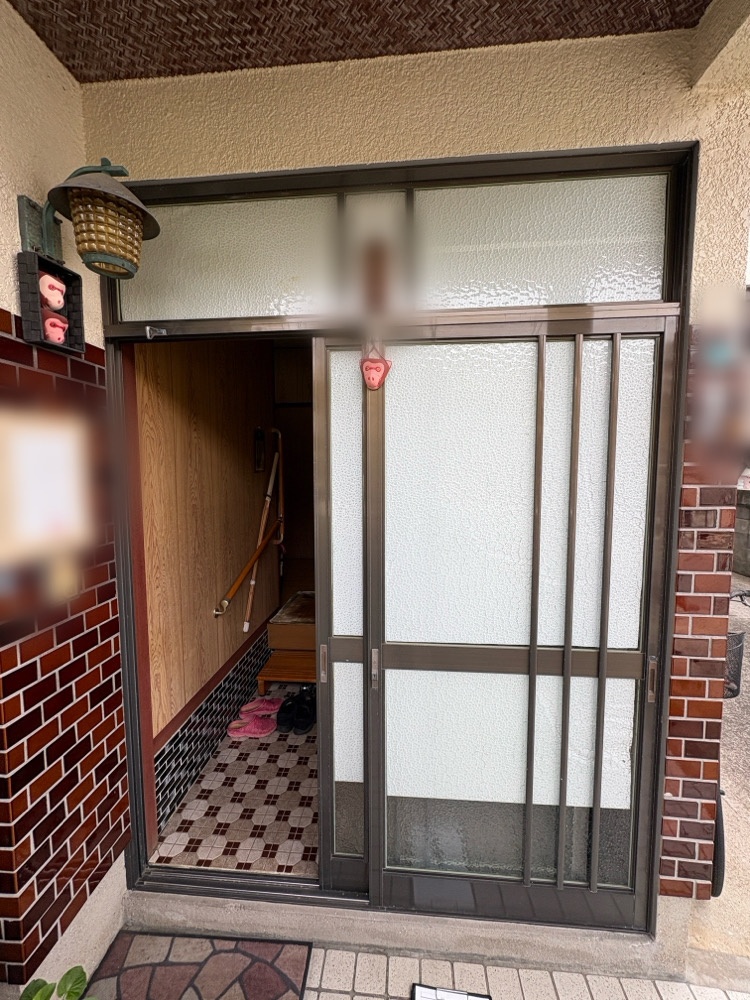 施工前は欄間付きの玄関ドアでしたが、今回は欄間をなくしたデザインに変更しました。