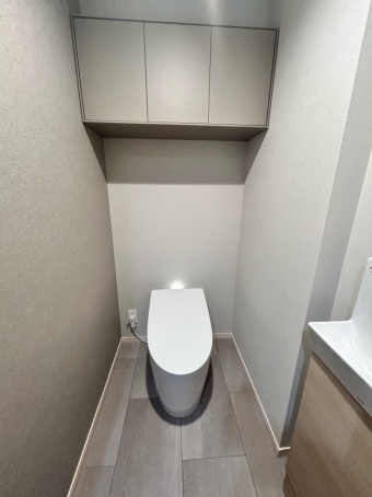 トイレは今流行りのグレー調を基調としたモダンな雰囲気に仕上げました。