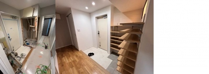 まずは既存の大きな玄関収納を解体・撤去し、空間を確保しました。