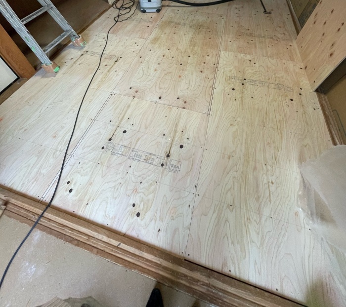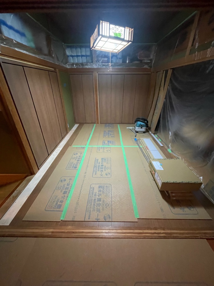 畳の上にマットを敷いておりましたが冬の寒さにお悩みだったので、根太からやり替え、断熱材も入れていきました。