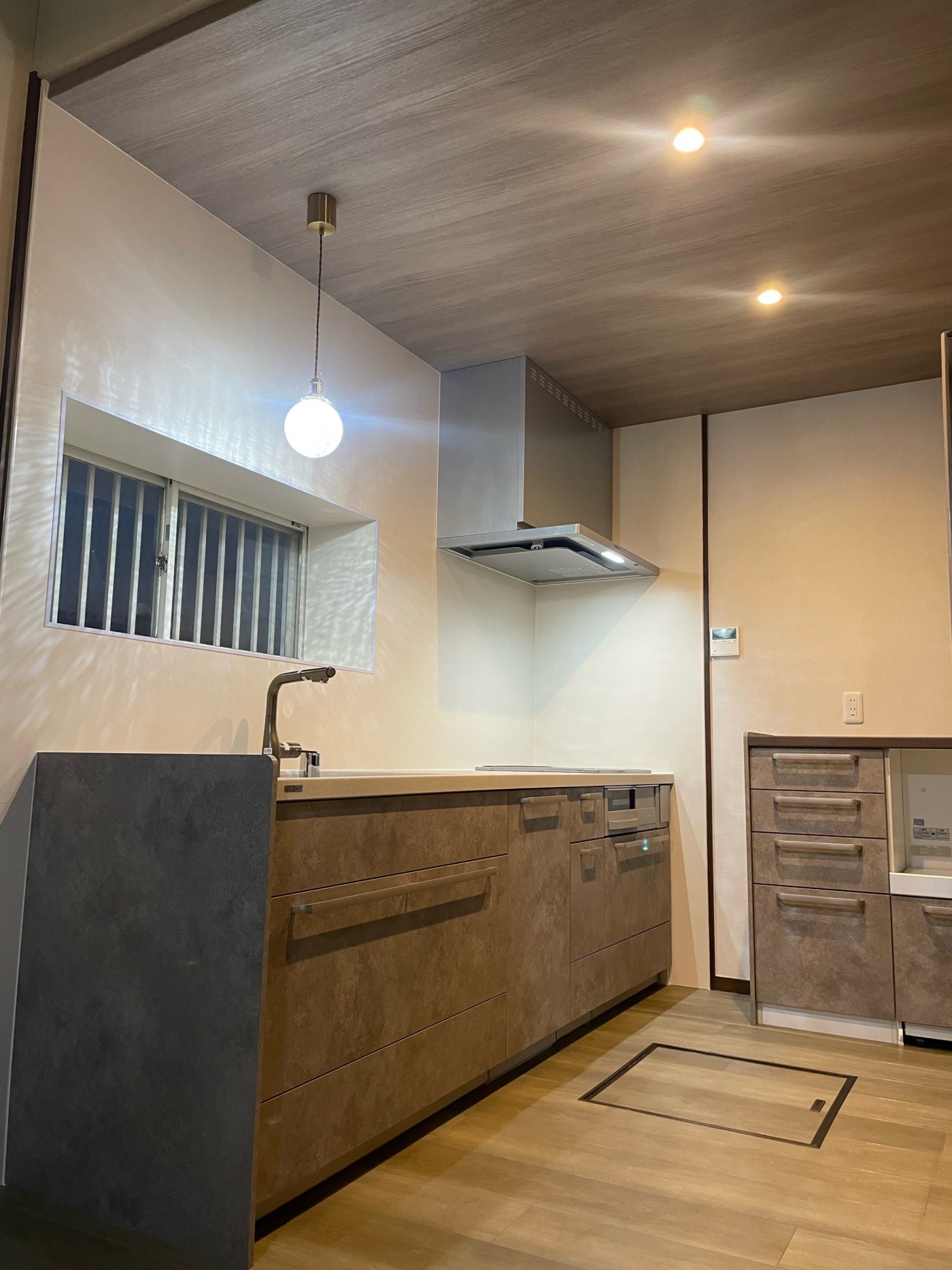 周辺の家具も撤去し、奥側にはカップボードも取り付けました。