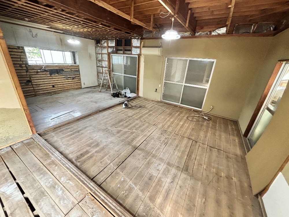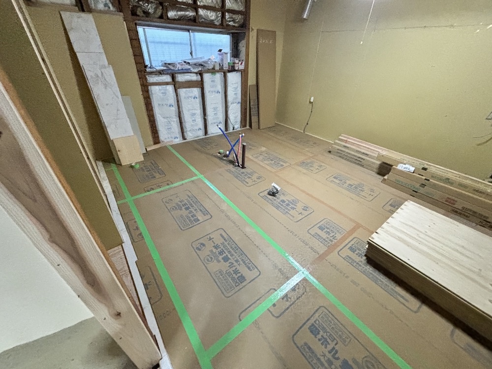 解体後床の高さを揃えてフローリングを貼っていきます。
