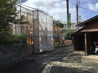 そんな中、天気に恵まれて新築工事の棟上げが行われました。