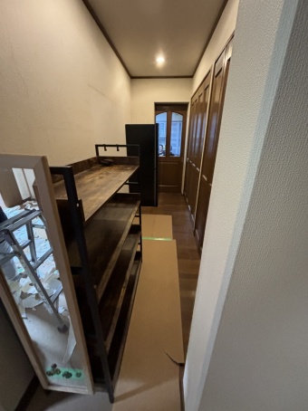 大きな家具等は職人さんに協力してもらい、動かしながら作業を進めていきます。