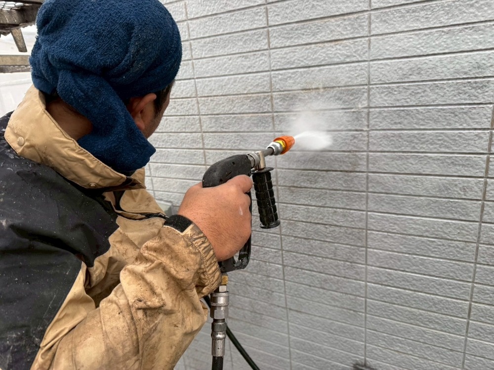 (チョーキング:塗膜が寿命を迎え、顔料が粉状になって表面に現れる経年劣化のサイン)