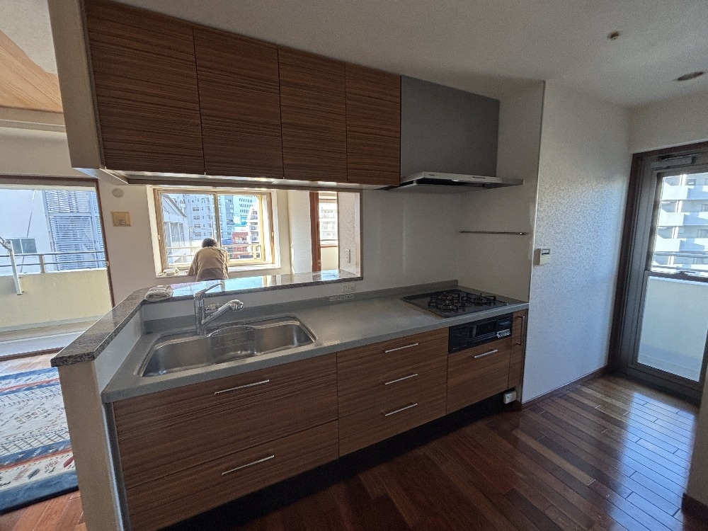 また、キッチン周辺にやや圧迫感があり、動線にもゆとりがあるとは言えない状態でした。LDKをより広く使いたいというご要望を受け、右横に隣接する洋室収納の壁を撤去し、そのスペースをLDK側に取り込む計画としました。