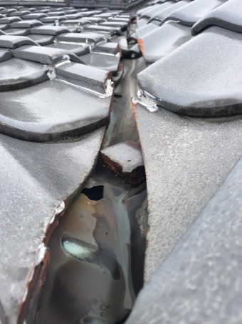 そこの瓦と瓦の谷板金の銅の部分に、穴が空いている部分があります。