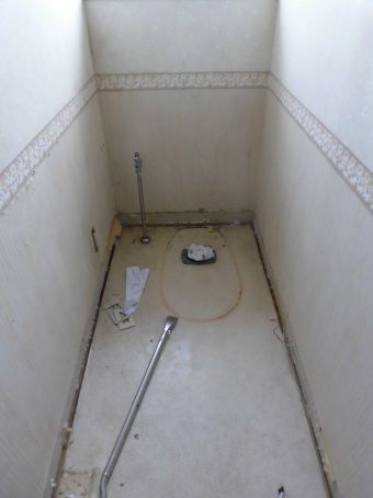 ↑工程①まずトイレを外します。サイドのカウンターも一緒に撤去します。