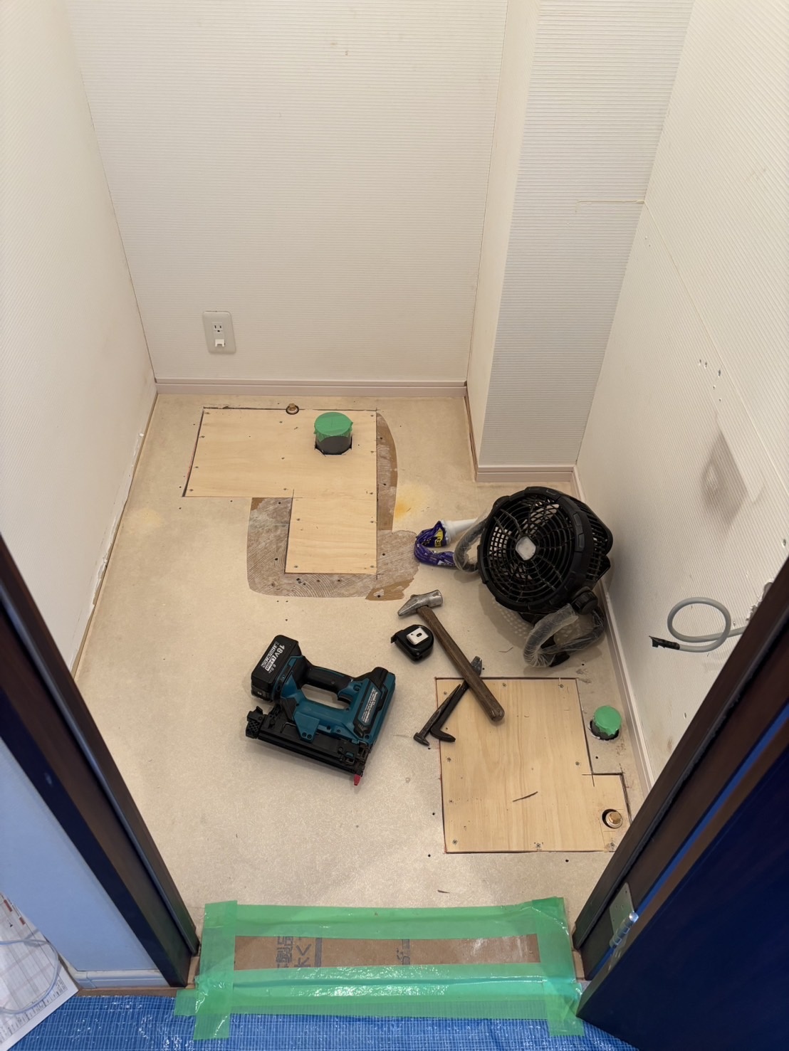 そして、配管するためにあけた穴を大工さんが補修をして、