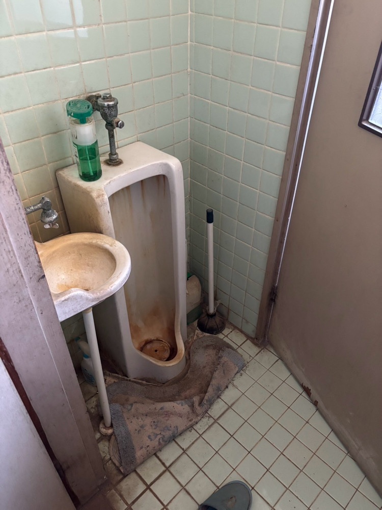 今回ご紹介させていただきます工事は、小便器と間仕切りを撤去、そして床・壁ともにタイル張りだったトイレのタイルを撤去し、下地から改修を行ったうえで、クロスおよびCF仕上げに変更し、内窓を取り付ける改装工事です。