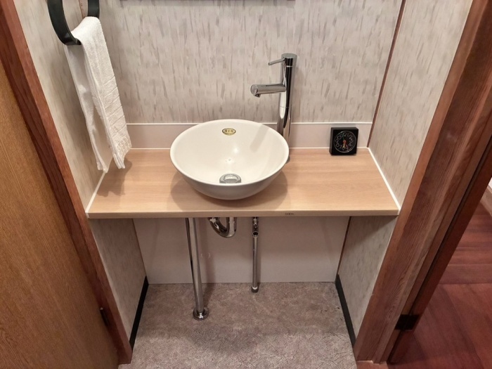 新しい手洗器は、以前のものよりもコンパクトで、
