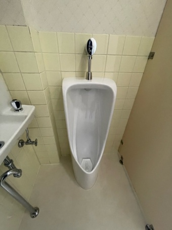 また、小便器も同様に清掃性に優れたフチなし形状で、ボウル面の傾斜により尿はねを軽減するタイプをご提案し、手洗い器については水栓金具の取替をご提案しております。