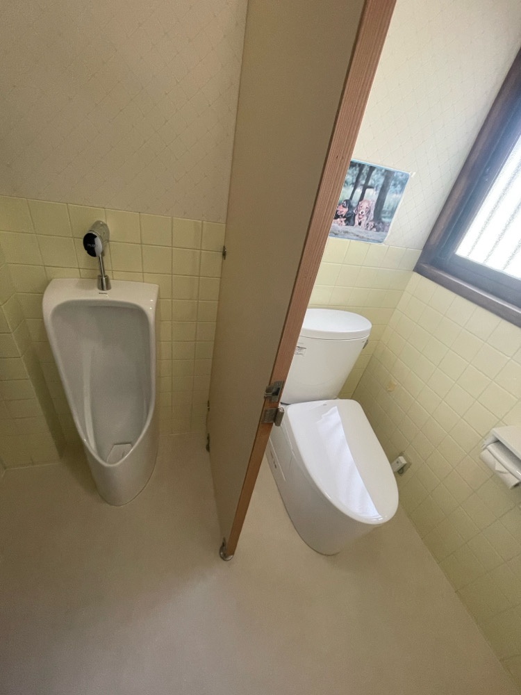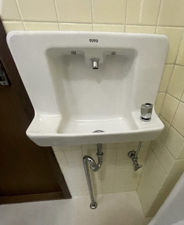 今回は、大便器の暖房便座やお掃除機能の不具合に加え、小便器も長年の使用による汚れが目立っており、さらに手洗い器ではハンドル部分からの水漏れが発生しているとのことでご相談をいただきました。