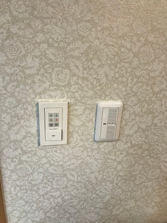 (お客さんの好みや要望を伺った上で)勝手にこだわった、壁紙と、ダウンライトの調色調光システムです。