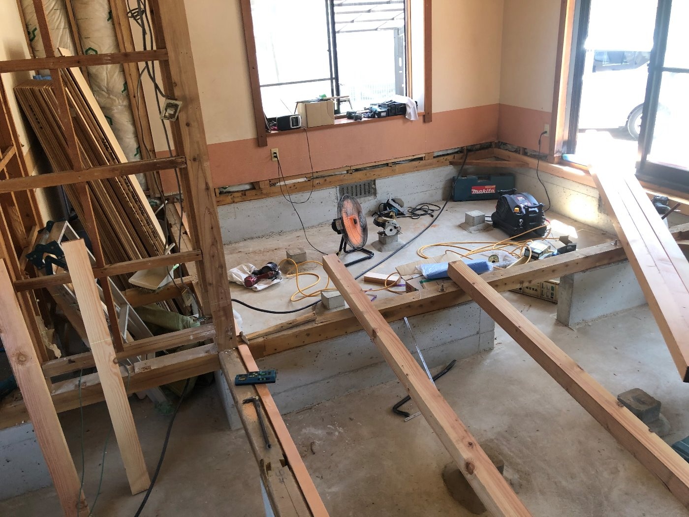床断熱が無く、事情があり床下配管に切り替えを行いますので