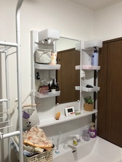棚板の取付、洗面台鏡、照明の取替を併せて行いました!