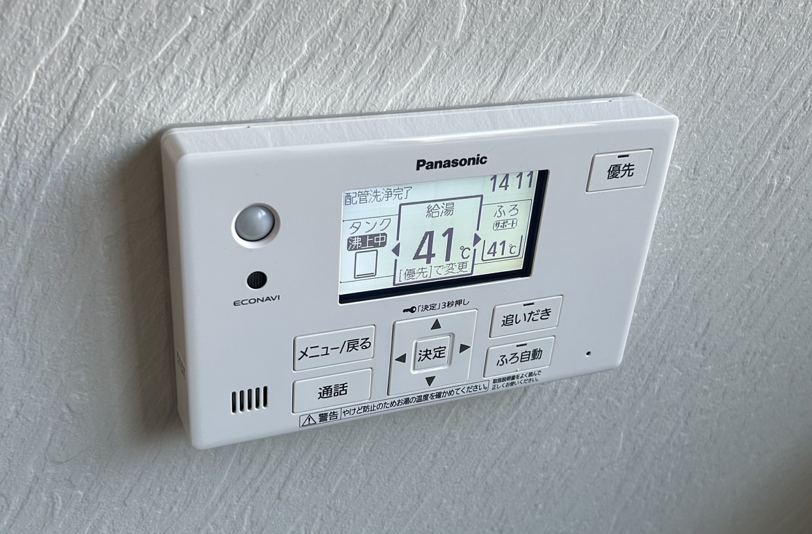 フルオートタイプという機種のもので、お湯が減ると自動で足し湯を行ったり、お風呂の栓を抜くと配管の中を自動で清掃する配管自動洗浄機能や、お風呂とキッチンとの通話機能なども搭載されております。