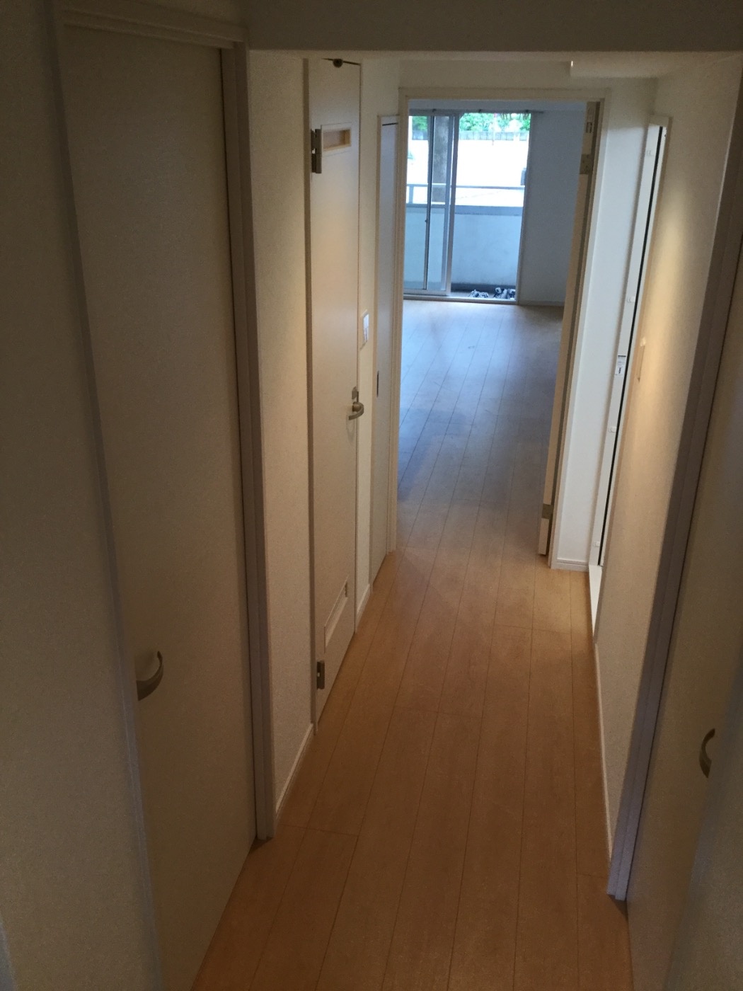 ディープグリーンの扉が廊下・リビングのアクセントになっています。
