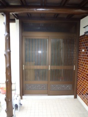 築後34年経っていましたので、玄関周りの塗装(木柱)も劣化していました。そこで、玄関引戸だけでなく、玄関周り全体のご提案をさせていただきました。防犯対策に加えて、玄関周りの木部塗装もおこない、木部の老朽化も改善しました。