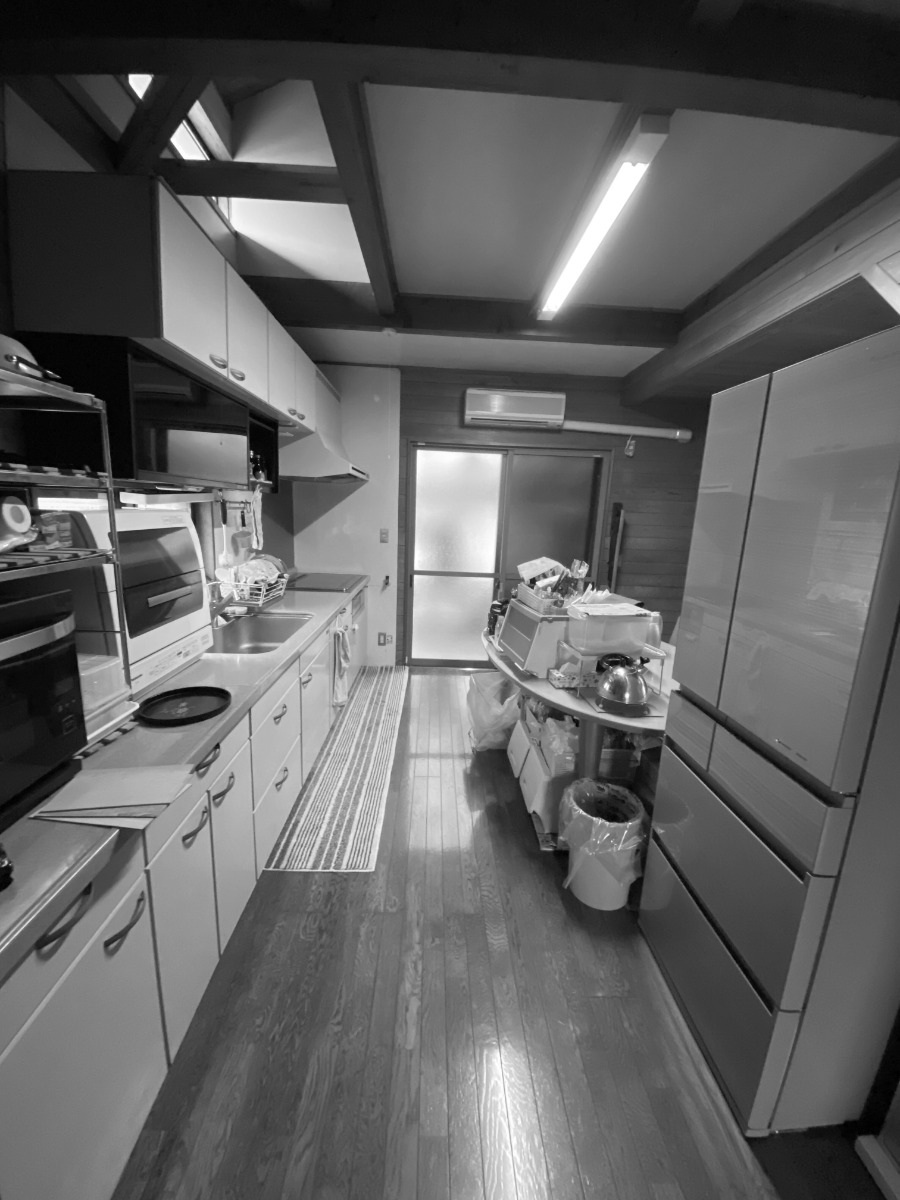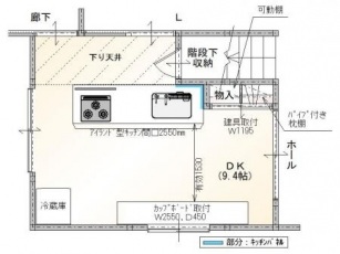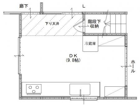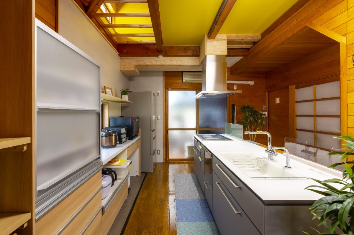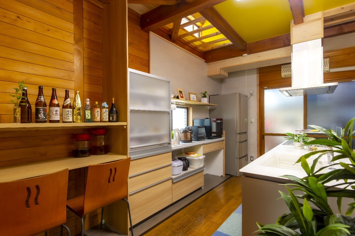 キッチンを使いやすい空間にしたいとご相談をいただきました。収納が少なく調理台にも物を置いているため、調理スペースが狭くて作業しづらいとお悩みでした。また、2階に匂いがあがってしまうため、キッチン上部の吹き抜けをつぶしたいとのご要望でした。