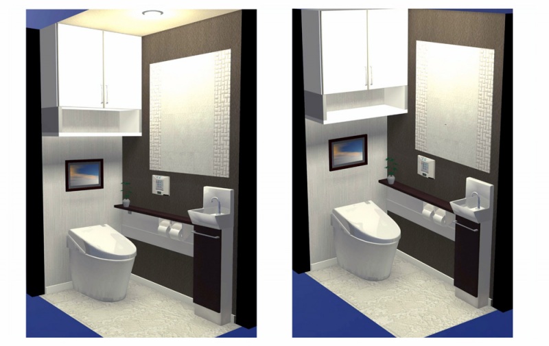 T様は築後12年のマンションにお住まいです。当初は、トイレの湿気が気になるので改善したいとご相談をいただきました。しかしお話しを伺っていると、古くなった便器や味気ない内装、タンクの手洗い器で手を洗った時の水はねなど、現状への不満がいろいろと出てきました。そこで、この機会にこれらの不満を全て解消することにしました。