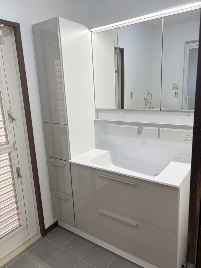 雰囲気が一気に変わり、洗面所だけホテルのような空間になって驚きました。収納が増えたことで使いやすくなり、お掃除もしやすいので毎日の家事も楽になりました。他の箇所も早くリフォームしたいなと思っています。