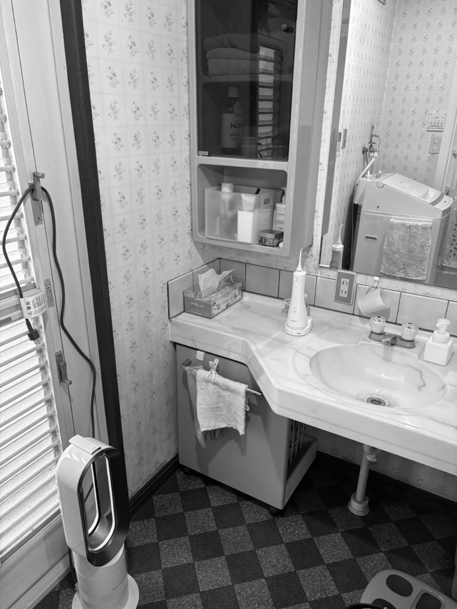 約30年間毎日使ってきた洗面所は、経年劣化による黄ばみや汚れが目立っていました。また、収納も少なく、タオルや日用品ですぐにいっぱいになり、清掃用具やストック品を入れる場所がなくお困りでした。