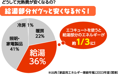 ご家庭で使う光熱費の中で約3分の1を占めるのが給湯です。